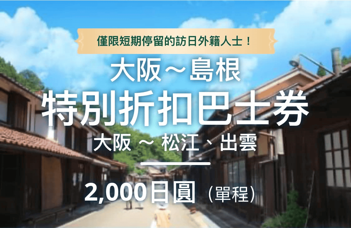 山陰地區的島根是全日本人口第二少的行政區(僅勝過鳥取),從大阪並沒有可以直達的電車,如果搭乘巴士約需4小時半車程,境內有國寶松江城、出雲大社、世界遺產石見銀山等景點,還有玉造溫泉及溫泉津…